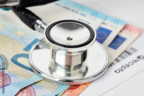 Stetoskop i pieniądze-opłaty za służbę zdrowia