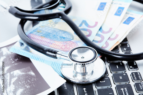 Stetoskop i pieniądze-opłaty za służbę zdrowia