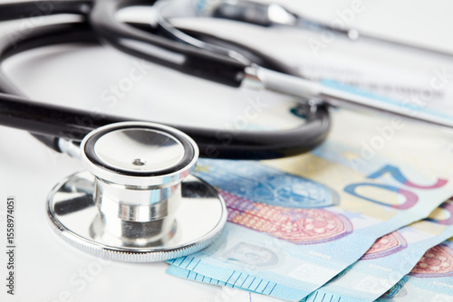 Stetoskop i pieniądze-opłaty za służbę zdrowia