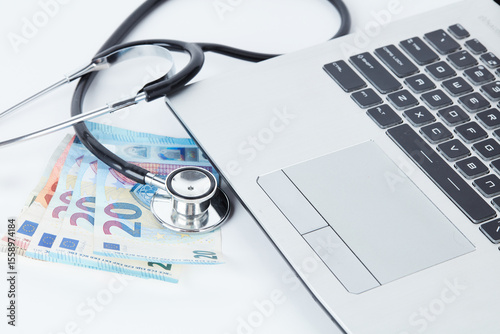 Stetoskop i pieniądze-opłaty za służbę zdrowia