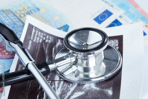 Stetoskop i pieniądze-opłaty za służbę zdrowia