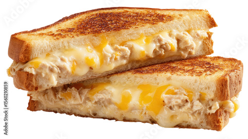 Warm and cheesy tuna melt sandwich isolated on transparent background