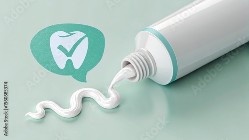 Toothpaste Freshness: A pristine tube of toothpaste dispenses a swirl of pearly white paste alongside an emblem of a healthy tooth.