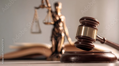 The gavel and scales symbolizing justice and legal authority in a courtroom setting.