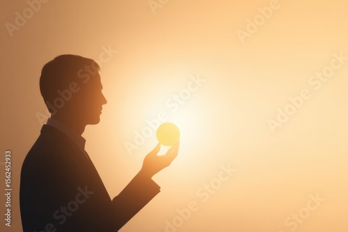 businessman silhouette holding glowing coin suggesting dividends against warm gradient background