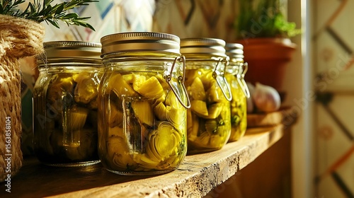 Jars of Carciofini Sott'olio Italian Preserved Artichoke Hearts on Shelf