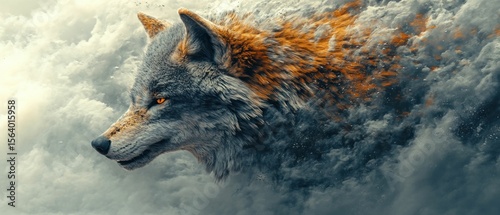 Wolf shrouded in ethereal clouds