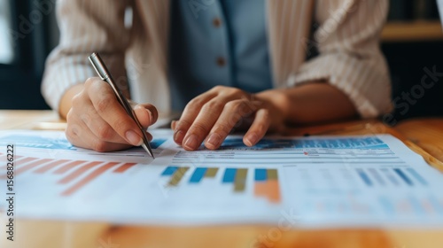 Hands of an HR specialist analyzing salary benchmarking documents