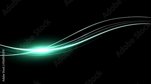 Green glowing shiny lines effect vector background with luminous white speed lines, light glowing trails, fire path tracer, and incandescence curve twirls creating dynamic vibrant energy and motion