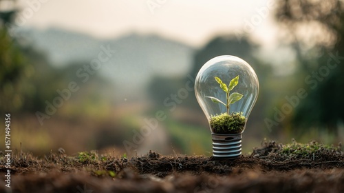 Une ampoule avec un plant vert à l'intérieur écologique, représente une idée éco responsable dans le cadre de la RSE