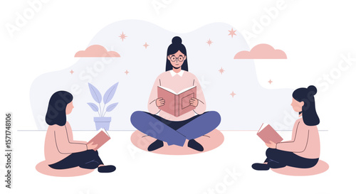 Young Women Immersed In The Captivating World Of Literature And Quiet Contemplation