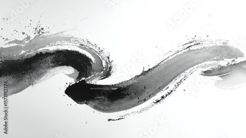 力強い筆の動きを捉えた墨ストローク抽象背景