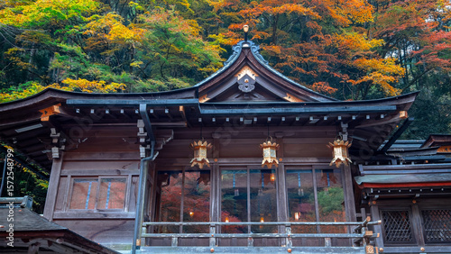 Kifune Shrine in Kyoto, Japan with beautiful autumn scenery. The shrine is dedicated to the god of water and rain and believed to be the protector of those at sea