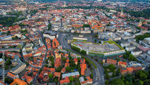 Aerial view around the old town in the city Braunschweig on an sunny spring morning in Germany