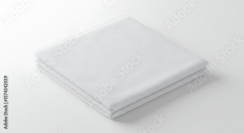 Two folded white cloths are stacked on a white surface, creating a simple, clean composition.