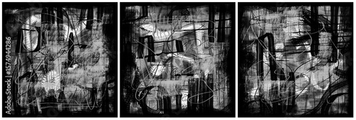 Modern interior triptych. The picture is painted by hand on a tablet.