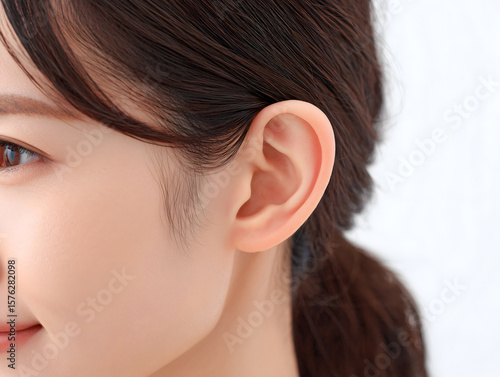 笑顔の女性の横顔と耳の美しいクローズアップ写真