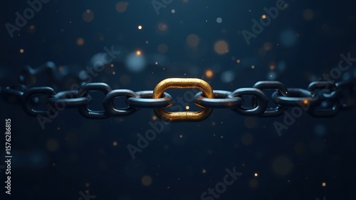 Golden Link on Dark Chain Background with Sparkling Bokeh Effects
