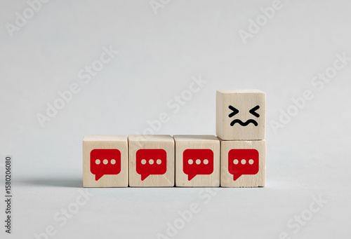 Negative feedback interrupting positive communication flow symbolized by wooden cubes
