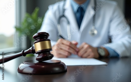 Gavel and stethoscope. medical jurisprudence. legal definition of medical malpractice. attorney. common errors doctors, nurses and hospitals make. High quality