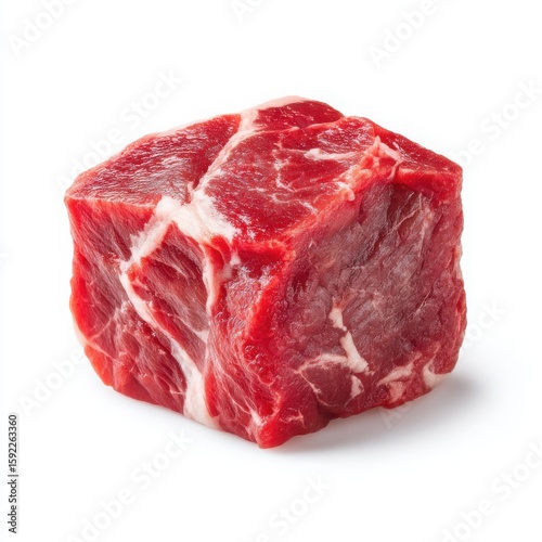 Raw Chuck Steak Cube Isolated on White Background: Fresh Red Meat with Marbling, Ready for Cooking, Culinary Ingredient, High-Protein Food Source
