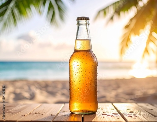 Orzeźwiający napój piwo oranżada w butelce na plaży