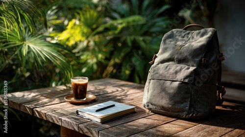 Weekend unplugged visual showing backpack, open journal, no phone policy, nature escape, tech-free lifestyle, peaceful solo travel, mental detox theme