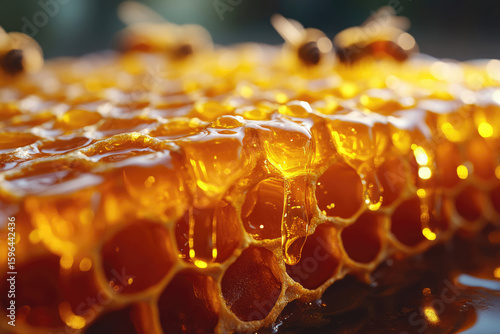 Intricate Structure of Honeycomb with Bees and Golden Nectar