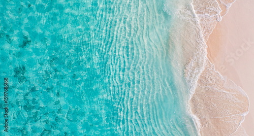 Picturesque summer top view aerial beach landscape Pristine sea perfect island shore blue lagoon ocean bay tropical coast sunny peaceful calm serene gorgeous nature vacation tourism escape picturesque