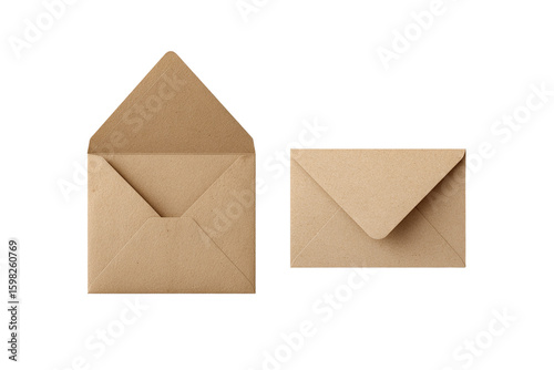Two kraft paper envelopes one open one closed ready for mailing