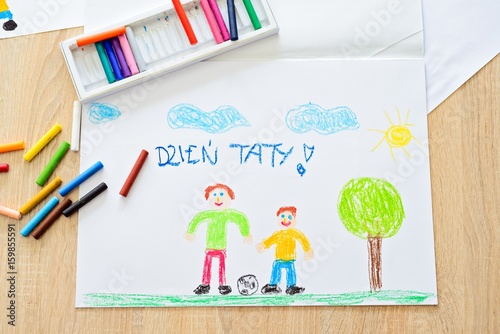 Kartka na Dzień Ojca, obrazek namalowany pastelami z napisem Dzień Taty