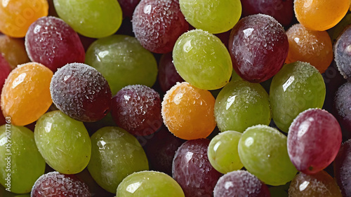 Beautifully arranged sugar-coated grapes. Tang Hu Lu