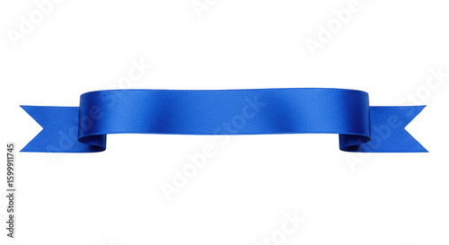 A vibrant blue ribbon banner with decorative ends on transparent background