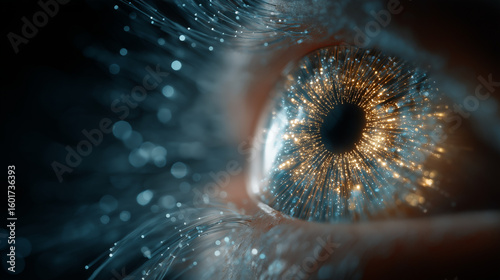 Cosmic Gaze: A close-up of an eye, the iris glows with a galaxy of shimmering lights, suggesting depth of thought and a universe within.