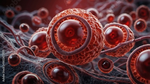 Microscopic view of cells reproducing and connecting with each other