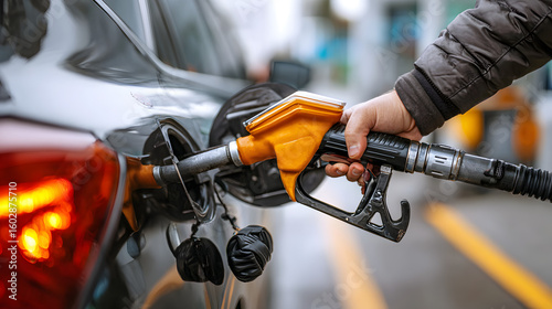 Remplissage de carburant diesel dans une station-service en milieu urbain pendant une journée ensoleillée