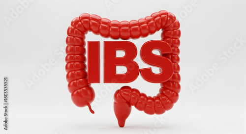 Red Intestinal Model with IBS on White Background Symbolizing Irritable Bowel Syndrome Awareness in Detailed 3D Render