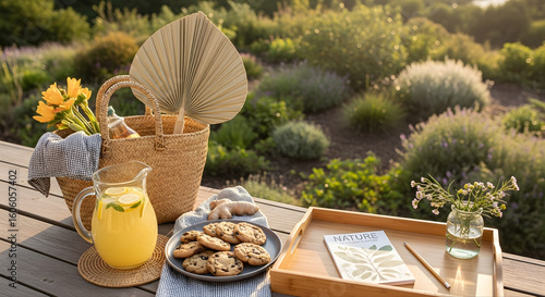 Solo Picnic Flatlay with Tea, Cookies and a Rose