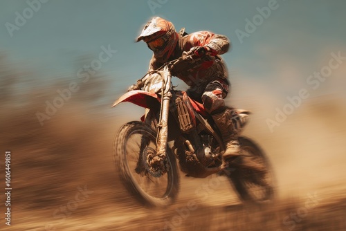 Thrilling Dirt Bike Riding: A Motocross Rider in Action on an Enduro Course