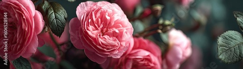Centifolia rose with floral tempo concept. Beautiful pink roses blooming softly in a serene environment.