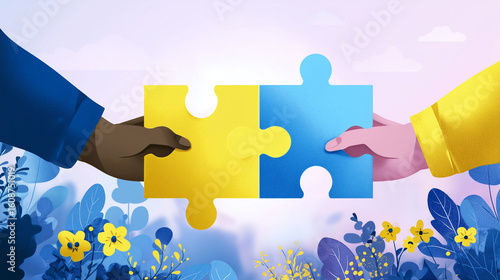 Biznesowa synergia i współpraca - dłonie łączące elementy puzzli, wektorowa ilustracja symbolizująca partnerstwo, rozwiązywanie problemów i strategiczne dopasowanie w biznesie