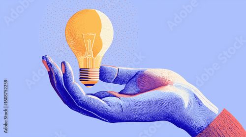 Chwytanie inspiracji - dłoń i żarówka. Wektorowa ilustracja biznesowa z żarówką symbolizująca kreatywność, innowację i moment olśnienia, idealna do materiałów o przedsiębiorczości i rozwoju osobistym.