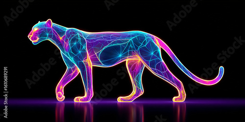 3D panther made of fractal light patterns and glowing neon energy