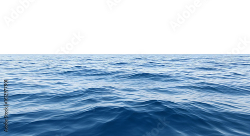 Blue ocean water surface with gentle waves and ripples. Isolated on transparent background, png