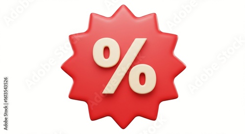 Bright red percentage sign icon with starburst shape. Perfect for sales, discounts, promotions, and special offers. Isolated.