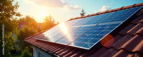 High-efficiency solar panels installed on a residential rooftop, angled optimally for maximum sunlight absorption Clean energy, sustainable technology, future of power , photovoltaic, sun