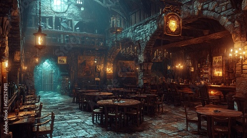 A medieval fantasy tavern setting, ideal for Dungeons & Dragons.