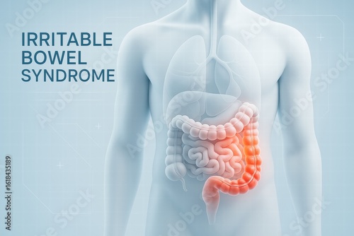 Detailed Diagram Illustrating Irritable Bowel Syndrome with Emphasis on Digestive Tract and Affected Areas, Aiding Understanding of This Common Condition
