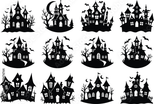 Halloween Scene. Set of elements for Halloween. Collection of black silhouettes.