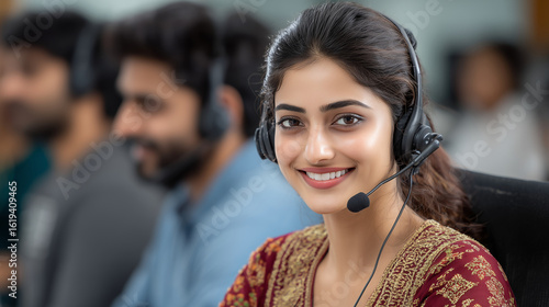 Beautiful Indian Call Center Woman Ready for Communication and Problem Solving